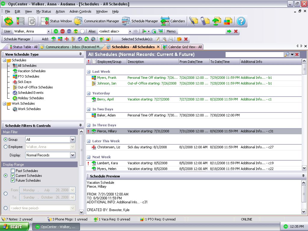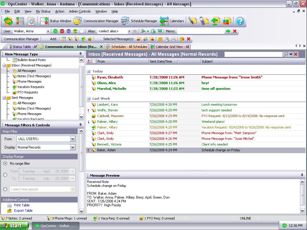 The Business OpsCenter is an integrated office communication and tracking
