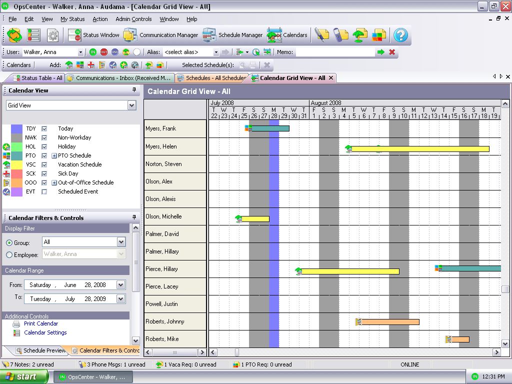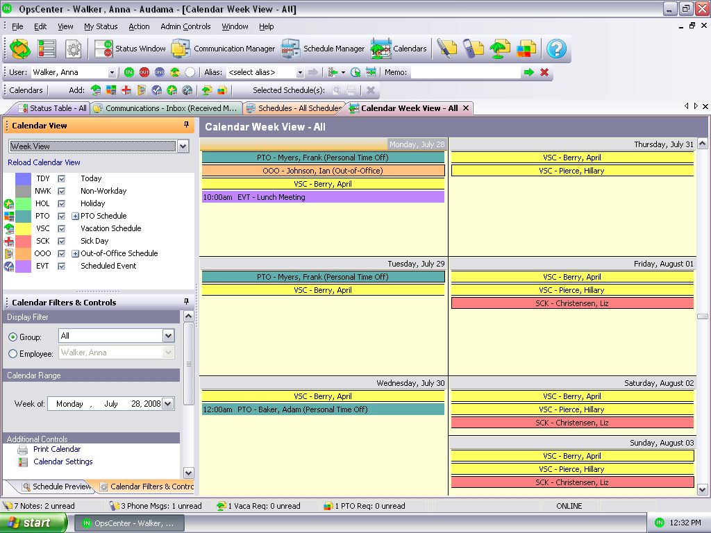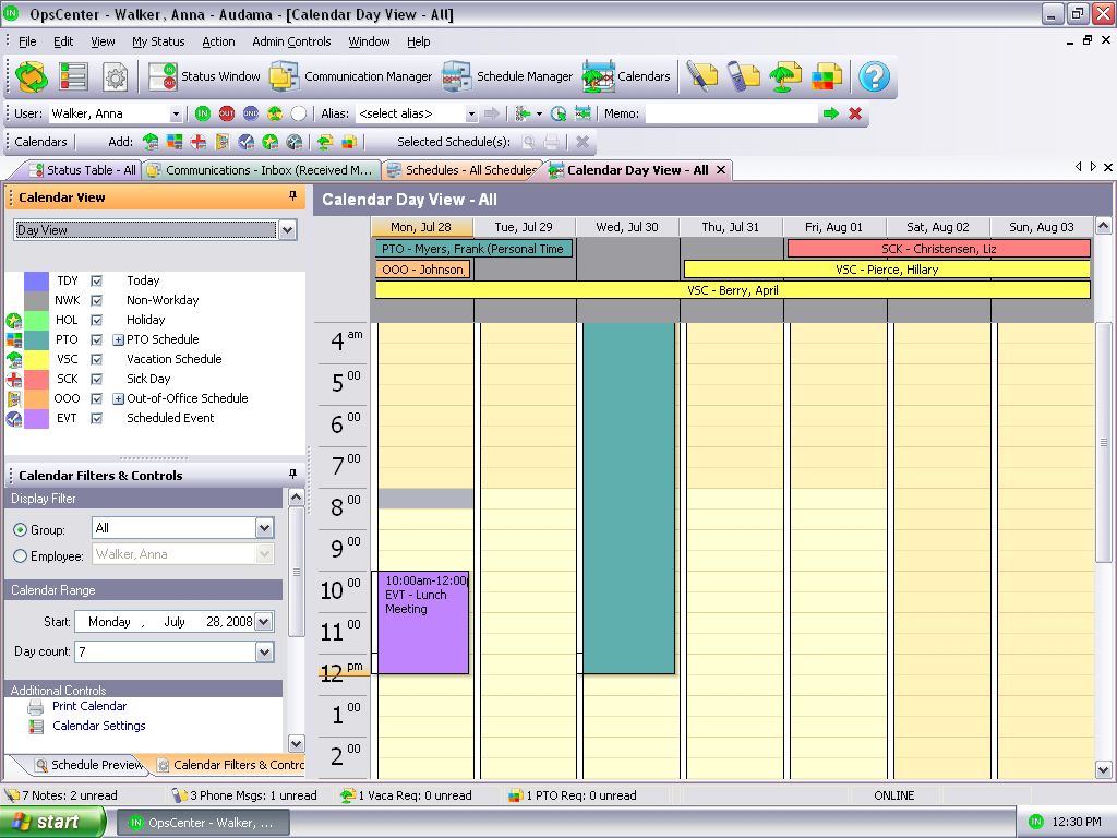 - Sick days and work schedules can also be tracked using the status table, vacation calendar, and event calendar,